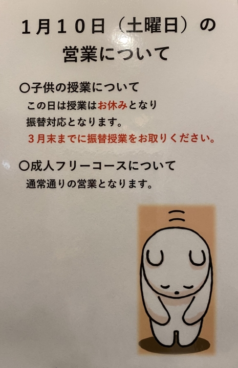 - 現在、警報が出ているため、全送迎は中止させていただきます。 営業については通常通り行いますが、各ご家庭で無理のないよう判断してください。 本日お休みの分については3ヶ月以内に振替をおとりください。