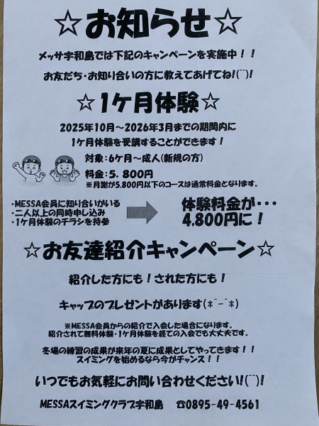 2025年3月23日(日)にMESSAスイミングクラブ宇和島で